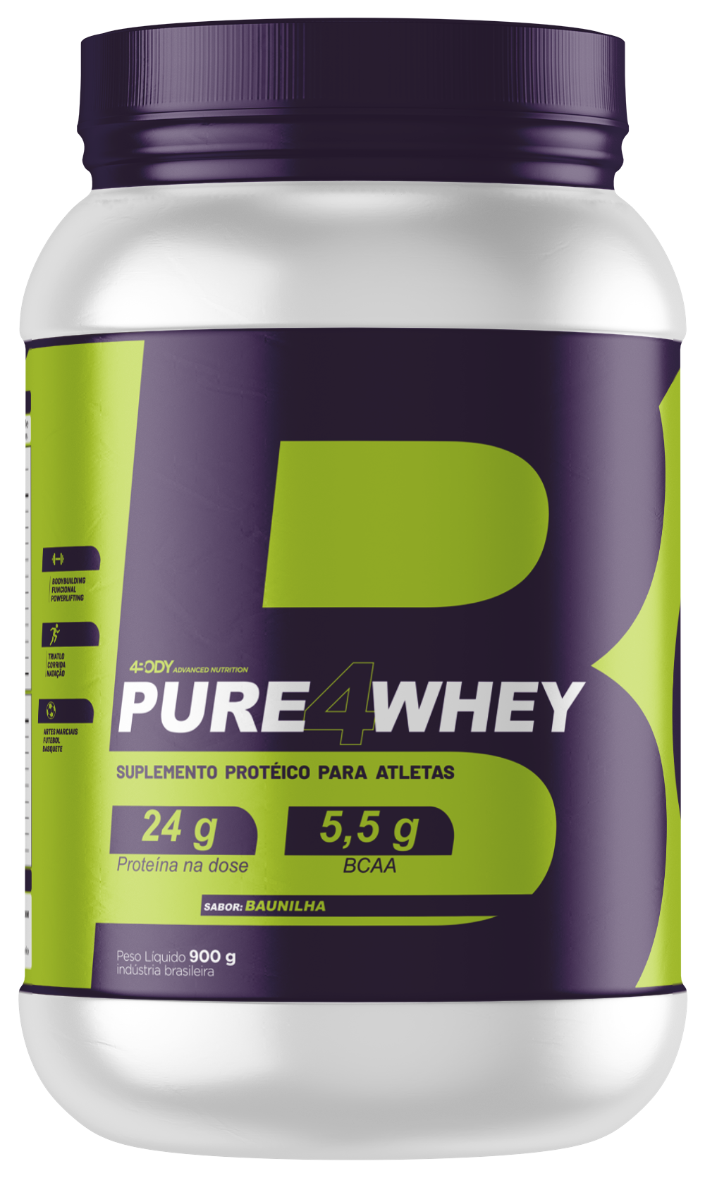 Ganhe mais massa magra com Pure4 Whey da 4BODY. 24g de proteína por dose, 5,5g de BCAA e excelente absorção. Ideal para atletas.
